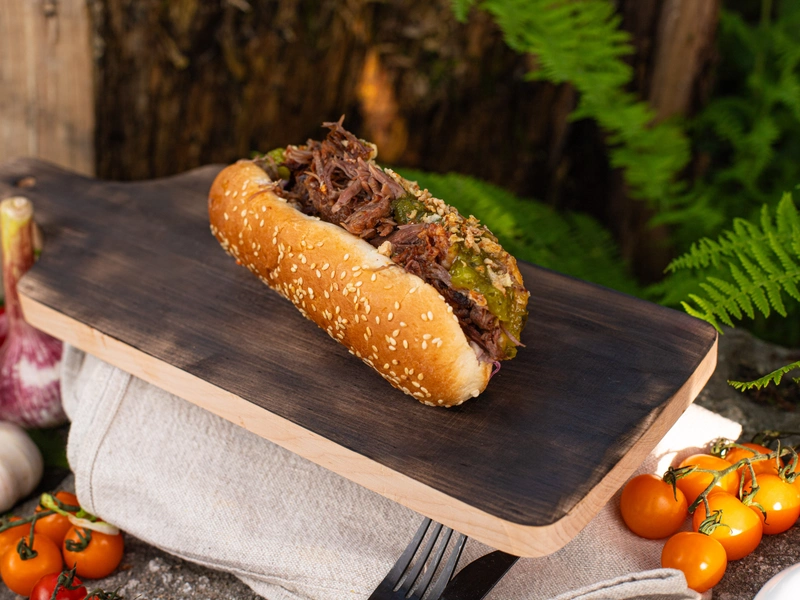 Бургер с рваной говядиной